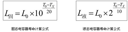 6.固態(tài)電解質(zhì)沒有揮發(fā)性,在使用中不易損失,因此使用壽命比液態(tài)電容器高出很多。液態(tài)鋁電容器遵循溫度每下降 10℃,壽命提高 2 倍的原則;固態(tài)鋁電容器則遵循溫度每下降20℃,壽命提高10倍的原則(如下表所示) 。